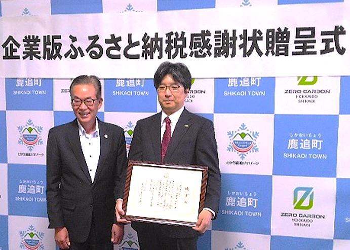 日本調理機株式会社(以下、当社)は、北海道鹿追町が推進する「まち・ひと・しごと創生寄附活用事業」に対して企業版ふるさと納税(地方創生応援税制)を行いました。